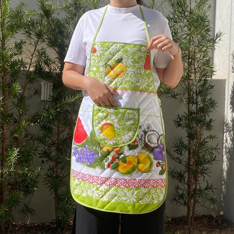 Nosso avental é um produto multiuso, ideal para utilizar na cozinha, lavanderia, fazer aquele churrasco, na hora de lavar o quintal e até mesmo para salões de beleza. Além de ser confortável, é muito fácil de limpar (não passa água na roupa) ! Avental com o fundo plastificado e Impermeável, com 1 bolso, essencial para o seu dia a dia de tarefas domésticas em casa , feito com muito capricho, para suas necessidades ! OBS: LAVAR O PRODUTO NA MÃO! BENEFÍCIOS: -Protege sua roupa -Super estiloso -Acabamento impecável -Fácil de usar e limpar -Material impermeável -Qualidade 100% CARACTERÍSTICAS: -Tamanho: 68 cm de comprimento X 48 cm de largura -Superfície 100% Matelado -Reforço em TNT; -100% Polipropileno -Possui bolso Obs: As estampas são sortidas e disponibilizadas de acordo com nosso estoque, qualquer dúvida me chama no chat para escolher sua estampa preferida, te respondo na hora !