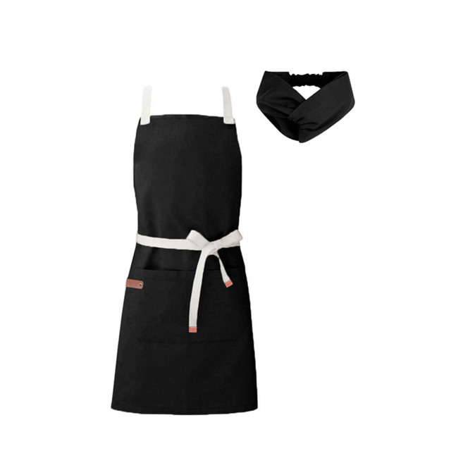 Avental e Faixa de Cabelo Cozinha Restaurante Bistro Preto
