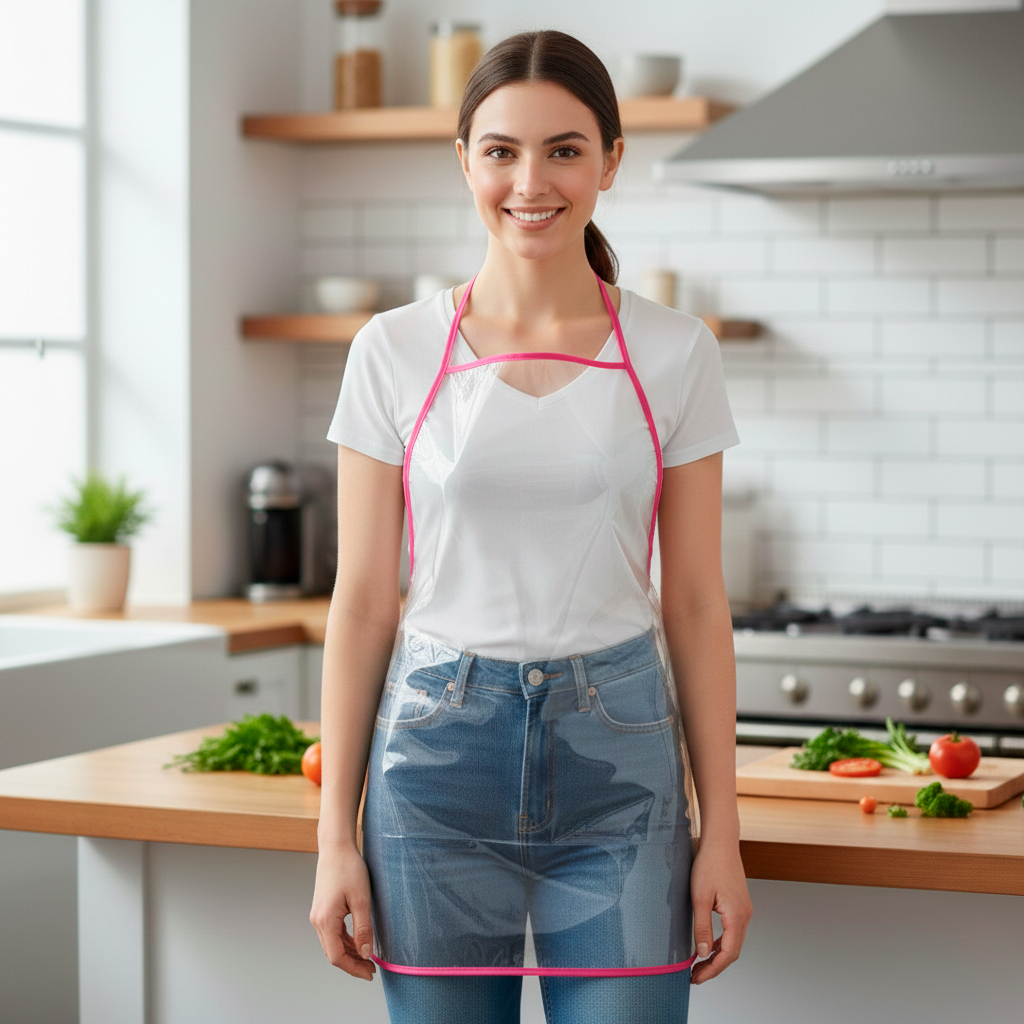 Avental Impermeável transparente do Recanto da Costura. Modelo feito com PVC transparente e viés lateral Praticidade e proteção para seu dia a dia. Quantidade de Peças e Medidas Aproximadas (Largura x Altura): 01: Avental 48cm x 68cm (Tamanho especificado considera apenas área do corpo, sem as alças) Material e Composição: Plástico Transparente (PVC) Informações Específicas: Feito em PVC: plástico transparente Não molha. Ideal para lavar louça ou roupa. Não indicado para usar próximo do forno e fogão Instruções de Lavagem: Limpar com pano úmido Informações Gerais: Material visual ilustrativo Pode haver alterações na tonalidade da cor da imagem do produto, devido a diferença de telas de visualização Fique atento(a) à descrição do produto, podendo não apresentar todas as peças que constam no material visual