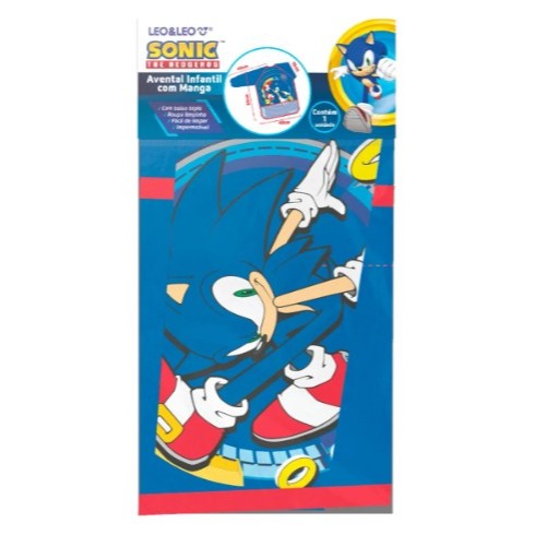 AVENTAL INFANTIL C/ BOLSO E MANGA COMPRIDA SONIC - BLISTER C/ 1 UND LEO&LEO