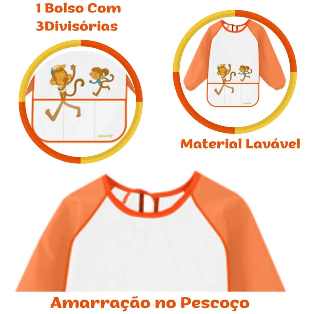 O Avental Infantil Cristal com Bolso e Manga Comprida - Blister com 1 Unidade Leo&Leo chegou para resolver o maior desafio da infância: brincar muito e manter as roupas limpinhas. Ele é a proteção que faltava para os pequenos durante as atividades lúdicas. Com mangas compridas e fechamento de cordão no pescoço, o avental oferece total cobertura e conforto. O bolso frontal com três divisórias é perfeito para guardar pincéis, lápis de cor e outros materiais, proporcionando praticidade durante o uso. Ideal para crianças entre 4 a 6 anos, ele garante liberdade de movimento enquanto protege as roupas, além de ser fácil de limpar. Ainda vem com um bolso frontal com três divisórias, perfeito para guardar pincéis, lápis de cor e outros materiais. Impermeável e transparente, esta novidade do Mundo Leo&Leo que é possível colorir ainda mais a imaginação das crianças sem afetar as roupas. - Usabilidade Avental com manga comprida, com fechamento de cordão no pescoço - Componentes 1 bolso frontal com 3 divisórias - Indicação de uso Ideal para crianças entre 4 a 6 anos - Material à prova d'água e de fácil limpeza - Dimensões Largura: 43cm - Largura do pescoço ao braço: 49cm - Largura do braço: 19cm - Composição Polietileno á prova d' água Características: - Marca:Leonora - Modelo:10228 *Imagens Meramente Ilustrativas* Conteúdo da Embalagem: - 01x Avental Infantil Cristal c/ bolso e manga comprida