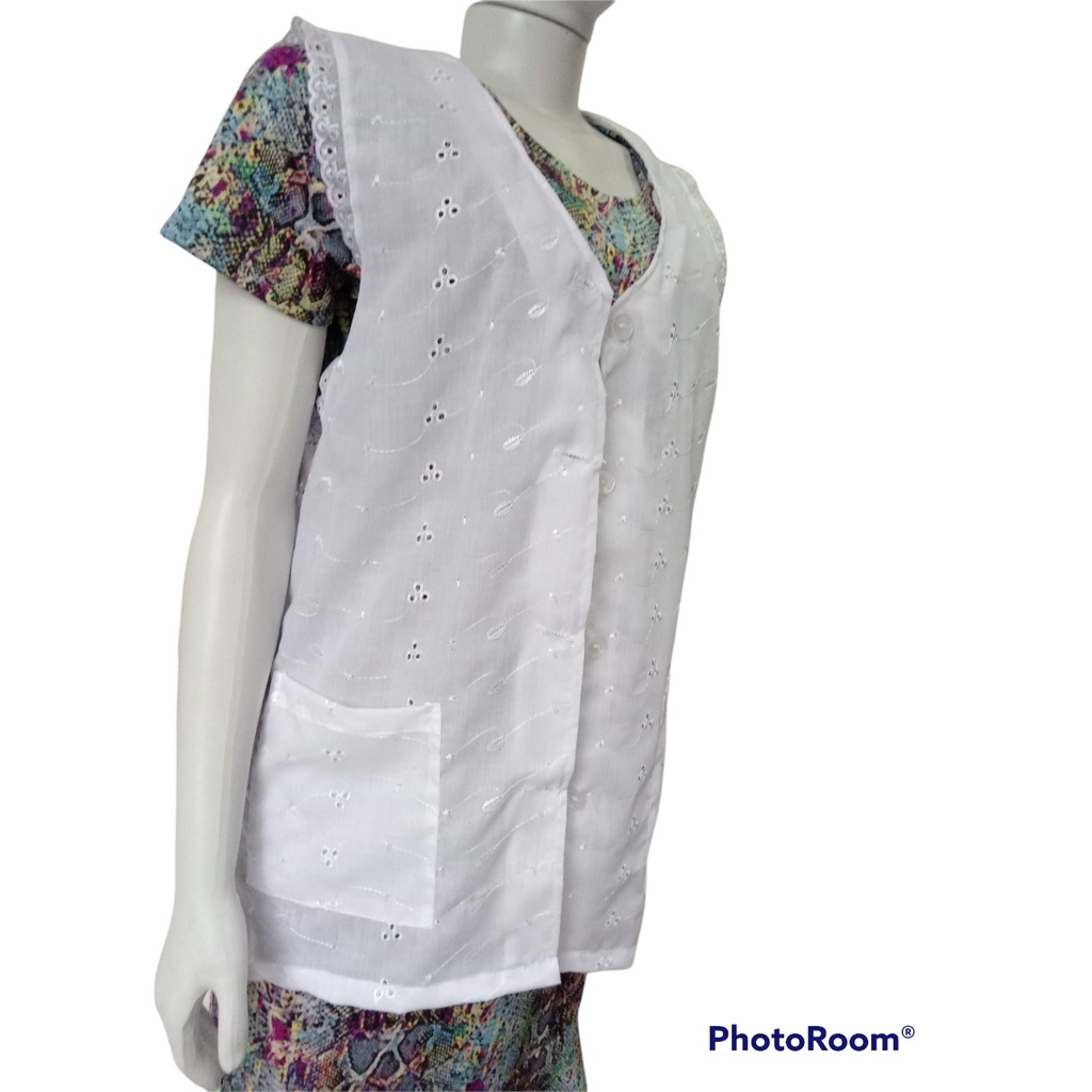 Avental Jaleco para Professora tecido leses laise C/ Bolso Podóloga, Cuidadora, Manicure Branco