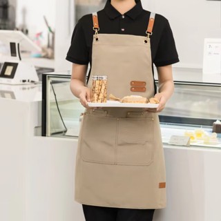 Avental Lona Impermeável Cozinha Unissex com Bolsos Ajustável Chef Garçom Barista Preto, Caqui, Azul