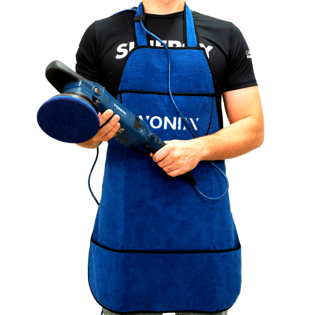 AVENTAL DE MICROFIBRA VONIXX CARACTERÍSTICAS: - IDEAL PARA O USO DURANTE O DETALHAMENTO DE VEÍCULOS - SUPERFÍCIE MACIA: NÃO ARRANHA A PINTURA DO VEÍCULO AO CONTATO - A PROVA D'ÁGUA - BOLSO FRONTAL - BOLSO LATERAL - SUPORTE PARA CABOS