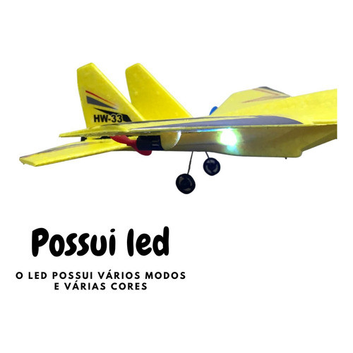 Avião Planador Infantil Importway Leve Amarelo Elétrico Controle Remoto Bateria Recarregável