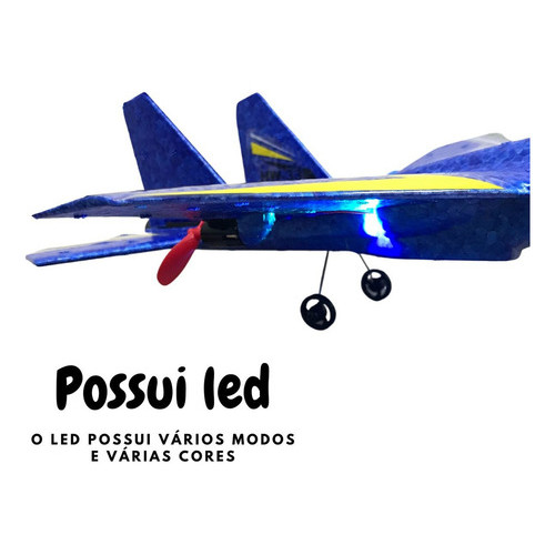 Aviao Planador Leve Controle Remoto Recarregável Azul