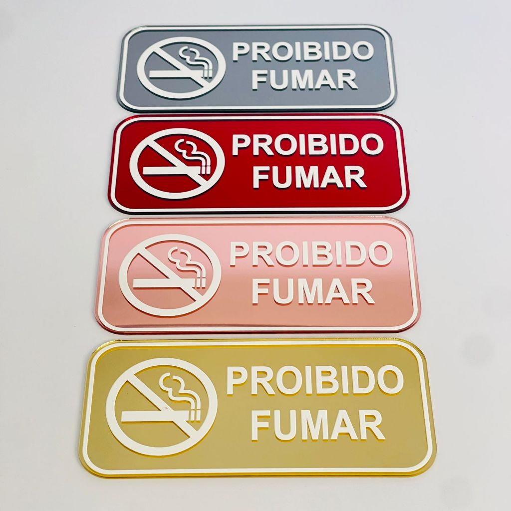 Aviso Placa Sinalização Proibido Fumar Acrílico Espelhado Impressão UV Ambiente