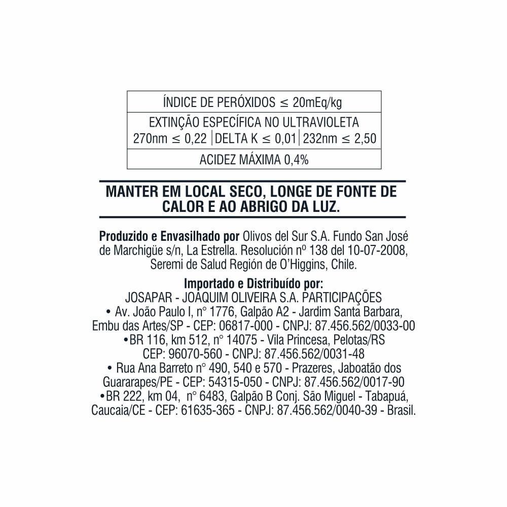O Azeite Nova Oliva Extra Virgem é elaborado a partir de azeitonas de origem espanhola, italiana e grega, cultivadas no Chile - uma mistura perfeita de sabores e aromas, que irão realçar seus pratos preferidos.
