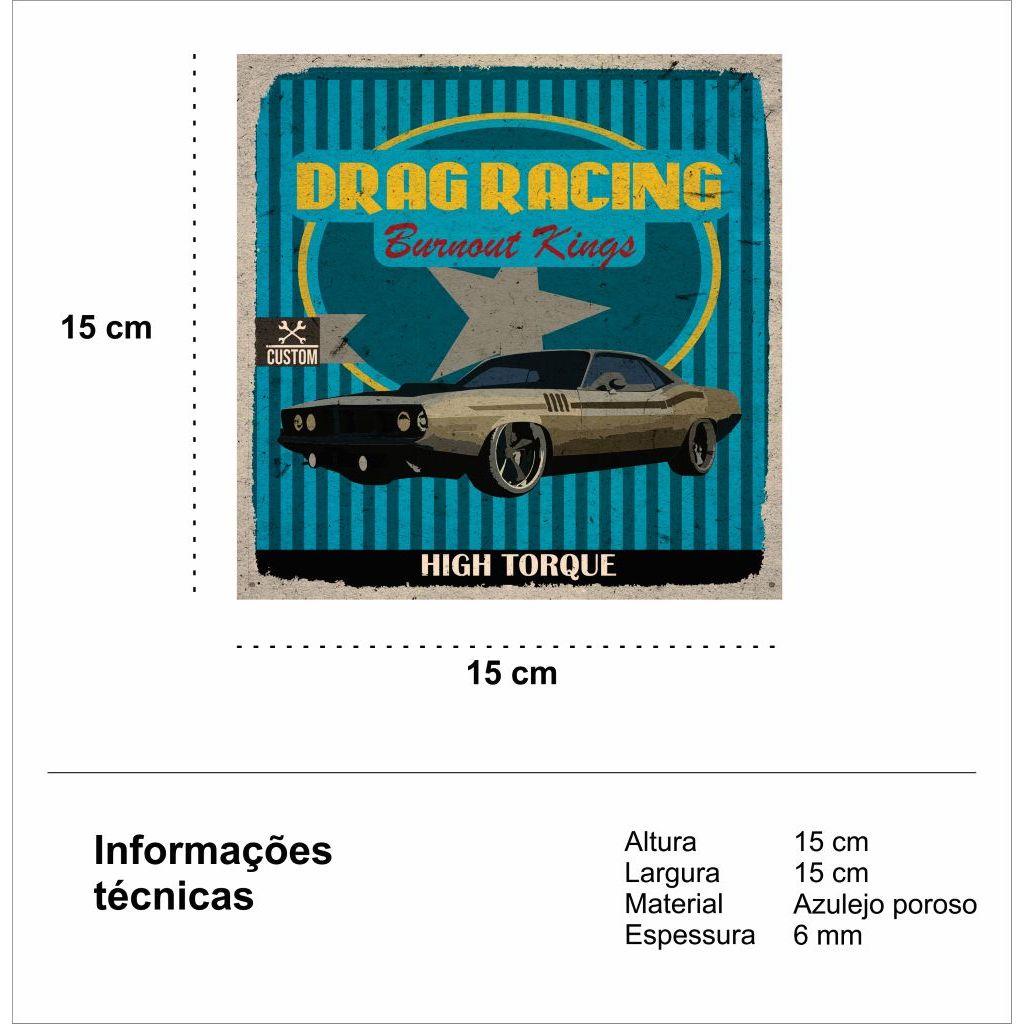 Azulejos Decorativos Caixa com 18 Peças de 15x15cm Vintage linha Carros Retrô.