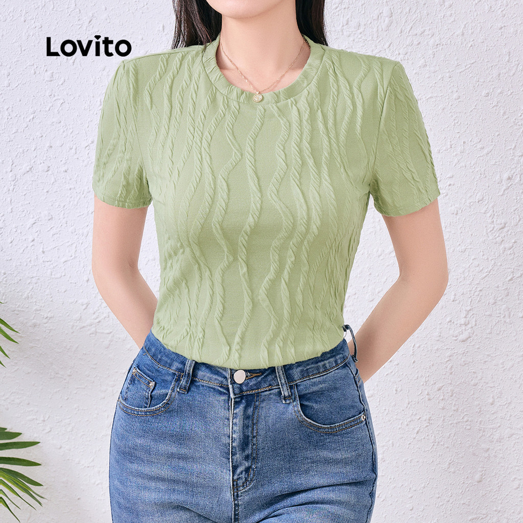 B137-JUL25-A-3-texturizado em torno do pescoço diário Casual manga curta-TSB137P1D658