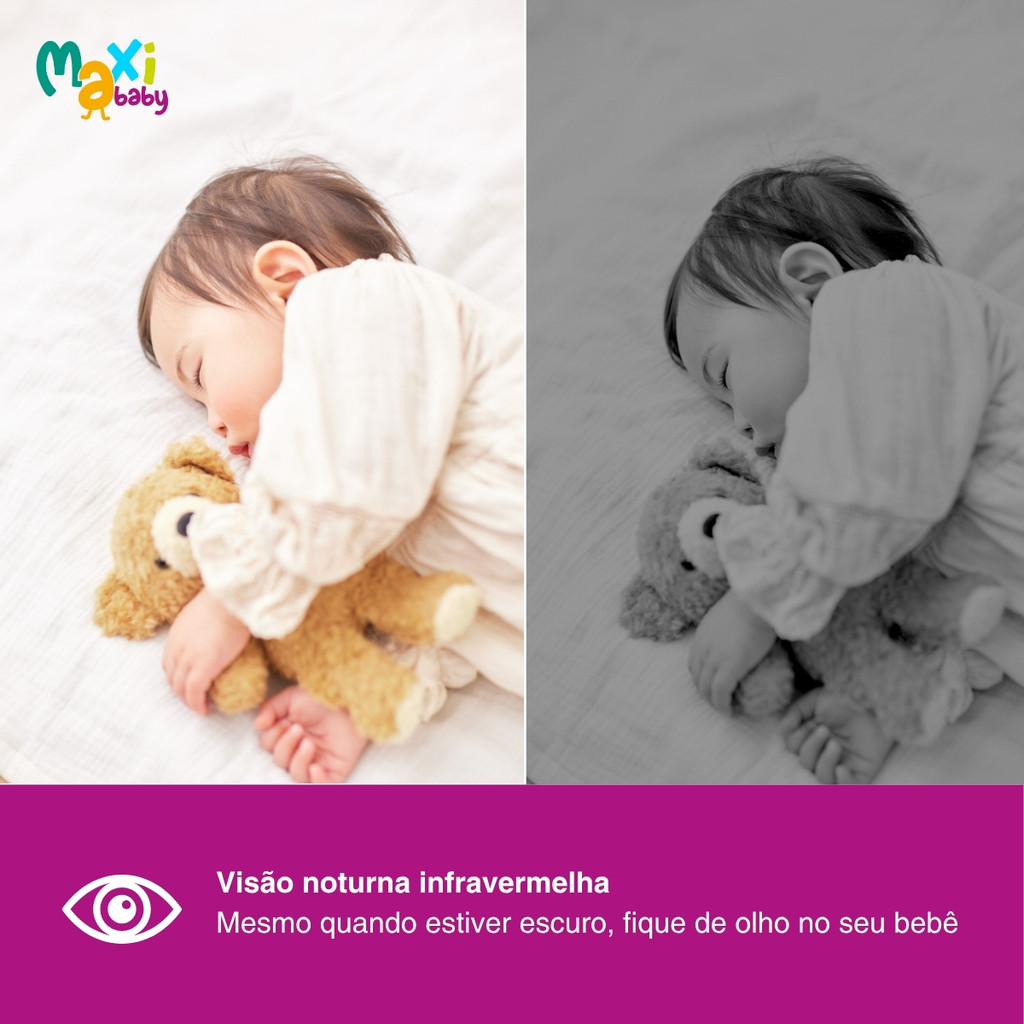 Babá Eletrônica Câmera Para Bebê Sem Fio Com Visão Noturna Tela LCD 2.4 Monitoramento de Temperatura de Ambiente Zoom Digital Baby ON Maxi Baby A Babá Eletrônica Baby ON da Maxi Baby é o equilíbrio perfeito entre tecnologia, segurança e praticidade para o cuidado diário com o seu bebê. Projetada para oferecer tranquilidade aos pais, ela permite que você acompanhe cada movimento e som do seu pequeno com máxima clareza, graças à sua tela colorida de 2,4 polegadas e à transmissão de vídeo em 720p. A câmera de alta performance conta com visão noturna infravermelha, garantindo imagens nítidas mesmo em ambientes com pouca luz, enquanto o microfone de alta sensibilidade capta até os sons mais suaves, mantendo você sempre atento ao bem-estar do seu filho. Com conexão segura e privada via tecnologia FHSS de 2,4 GHz, a Baby ON da Maxi Baby dispensa Wi-Fi e elimina qualquer risco de invasão, proporcionando uma comunicação estável e protegida entre as unidades. Seu alcance de até 300 metros oferece liberdade para se movimentar pela casa enquanto mantém o monitoramento constante, e o zoom digital de 2x permite observar cada detalhe com facilidade. A unidade dos pais é leve, intuitiva e possui bateria recarregável com duração de até 5 horas, ideal para acompanhar sua rotina. Além disso, o indicador de temperatura ambiente ajuda a garantir que o quarto do bebê esteja sempre confortável, e o modo despertador auxilia na organização dos horários de cuidado, alimentação e descanso. Com design moderno na cor branca e acabamento de alta qualidade, esta babá eletrônica é uma aliada indispensável para quem busca segurança, praticidade e tranquilidade no dia a dia. A Baby ON da Maxi Baby é mais do que um monitor — é a certeza de estar sempre presente, mesmo à distância. Principais Características: - Tela colorida de 2,4″ LCD colorido, resolução 480 × 272 pixels - Conexão segura e privada via tecnologia FHSS de 2,4 GHz (sem Wi-Fi) - Alcance de até 300m (Este valor é em linha de visada ideal. Paredes, obstáculos, interferência podem reduzir o alcance). - Câmera com visão noturna infravermelha para monitoramento em baixa luminosidade - Zoom digital de 2x para aproximar a imagem com clareza - Microfone de alta sensibilidade que capta até os sons mais sutis - Indicador visual de nível de som na unidade dos pais - Monitoramento de temperatura ambiente do quarto do bebê - Comunicação de áudio unidirecional (pais ouvem o bebê) - A Bateria integrada (Unidade dos pais) ~2.000 mAh recarregável dura em torno de 5 horas sem estar conectada à tomada. - Alerta de despertador para horários de cuidados do bebê - Instalação simples e uso intuitivo, sem necessidade de aplicativos - Design compacto e moderno na cor branca - Câmera com controle manual de panorâmica e inclinação - Fonte de alimentação direta na tomada para a câmera do bebê Especificações Técnicas: - Conteúdo da Embalagem: 1 Aparelho dos Pais Tela LCD 2,4 Polegadas, 1 Camera, 1 Adaptador de energia + Manual de Instruções. - Garantia: 12 Meses (Contra Defeito de Fabricação Pelo Fabricante) - Certificação: Homologação ANATEL 05315-25-08069 - Referência do Fabricante: 22000 - EAN: 7899403220008 - Marca: Maxi Baby Imagens meramente ilustrativas, as cores e estampas podem variar de acordo com o lote do fabricante.