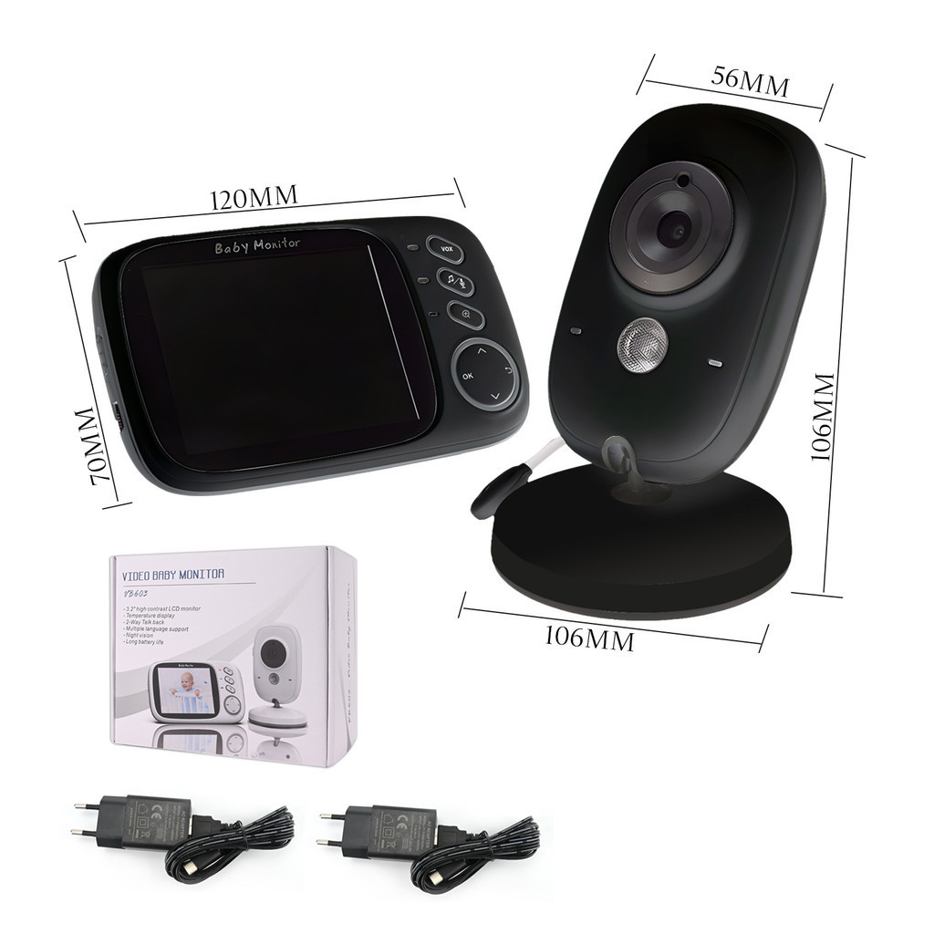 Babá Eletrônica Kit de monitoramento com visão noturna eletrônico, monitoramento portátil fácil e prático. Áudio bidirecional entre a câmera e monitor, você pode falar de volta para o bebê, saiba a temperatura ambiente do seu bebê durante o dia todo, sem preocupações. Canções de ninar na memória, ajuda o bebê a se acalmar e cair no sono. Características: Monitor sem fio O Monitor sem fio portátil possui tela de LCD de 3.2 polegadas, lente de alta qualidade e diodo emissor de luz infravermelho. Ele monitora a temperatura tornando mais fácil manter um olho em seus bebês, idosos ou animais de estimação tanto durante o dia e no escuro da noite. Áudio em dois sentidos entre a câmera e monitor para que você possa falar com o seu bebê além de escutar. Você consegue monitorar seus filhos numa distância de até 260m em ambientes abertos. Visão noturna automática: Mantenha um olho no bebê durante toda a noite com visão noturna automática. Assim que o quarto escurece ele é ativado para o seu maior conforto. Monitoramento de temperatura: Conheça a temperatura ambiente do seu bebê durante todo o dia sem preocupações. Músicas - Canções de ninar embutidas. Selecione uma bela canção de ninar. De agora em diante, não será mais difícil fazer seu bebê dormir. O Monitor tem bateria com longa duração com autonomia de 18h de uso, no modo VOX.