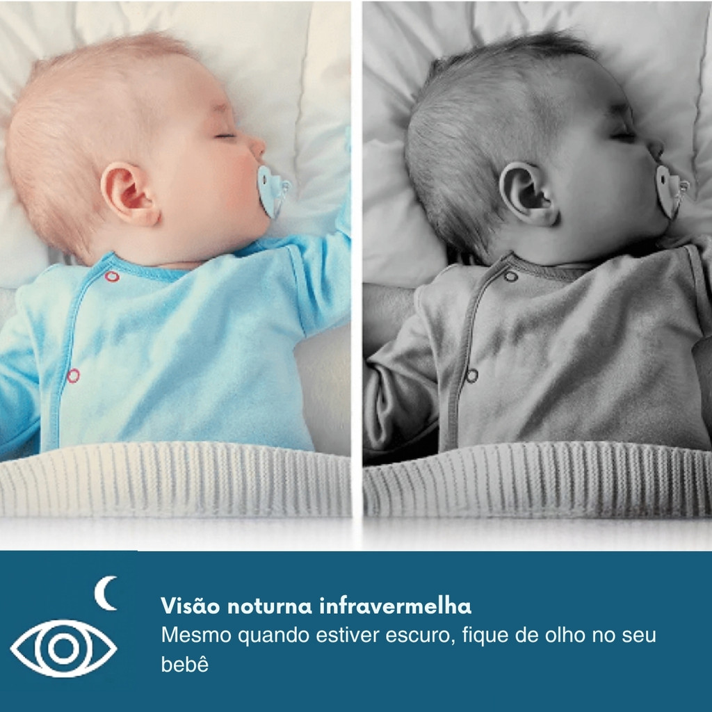 Babá Eletrônica VM482 Com Monitoramento de Temperatura de Ambiente Visão Noturna e Zoom Digital Motorola Áudio unidirecional Motorola A Babá Eletrônica Motorola VM482 é o equilíbrio perfeito entre tecnologia, segurança e praticidade para o cuidado diário com o seu bebê. Projetada para oferecer tranquilidade aos pais, ela permite que você acompanhe cada movimento e som do seu pequeno com máxima clareza, graças à sua tela colorida de 2,4 polegadas e à transmissão de vídeo em 720p. A câmera de alta performance conta com visão noturna infravermelha, garantindo imagens nítidas mesmo em ambientes com pouca luz, enquanto o microfone de alta sensibilidade capta até os sons mais suaves, mantendo você sempre atento ao bem-estar do seu filho. Com conexão segura e privada via tecnologia FHSS de 2,4 GHz, a Motorola VM482 dispensa Wi-Fi e elimina qualquer risco de invasão, proporcionando uma comunicação estável e protegida entre as unidades. Seu alcance de até 300 metros oferece liberdade para se movimentar pela casa enquanto mantém o monitoramento constante, e o zoom digital de 2x permite observar cada detalhe com facilidade. A unidade dos pais é leve, intuitiva e possui bateria recarregável com duração de até 5 horas, ideal para acompanhar sua rotina. Além disso, o indicador de temperatura ambiente ajuda a garantir que o quarto do bebê esteja sempre confortável, e o modo despertador auxilia na organização dos horários de cuidado, alimentação e descanso. Com design moderno na cor branca e acabamento de alta qualidade, esta babá eletrônica é uma aliada indispensável para quem busca segurança, praticidade e tranquilidade no dia a dia. A Motorola VM482 é mais do que um monitor — é a certeza de estar sempre presente, mesmo à distância. Principais Características: - Tela colorida de 2,4″ LCD colorido, resolução 480 × 272 pixels - Conexão segura e privada via tecnologia FHSS de 2,4 GHz (sem Wi-Fi) - Alcance de até 300m (Este valor é em linha de visada ideal. Paredes, obstáculos, interferência podem reduzir o alcance). - Câmera com visão noturna infravermelha para monitoramento em baixa luminosidade - Zoom digital de 2x para aproximar a imagem com clareza - Microfone de alta sensibilidade que capta até os sons mais sutis - Indicador visual de nível de som na unidade dos pais - Monitoramento de temperatura ambiente do quarto do bebê - Comunicação de áudio unidirecional (pais ouvem o bebê) - A Bateria integrada (Unidade dos pais) ~2.000 mAh recarregável dura em torno de 5 horas sem estar conectada à tomada. - Alerta de despertador para horários de cuidados do bebê - Instalação simples e uso intuitivo, sem necessidade de aplicativos - Design compacto e moderno na cor branca - Câmera com controle manual de panorâmica e inclinação - Fonte de alimentação direta na tomada para a câmera do bebê Especificações Técnicas: - Conteúdo da Embalagem: 1 Aparelho dos Pais Tela LCD 2,4 Polegadas, 1 Camera, 1 Adaptador de energia (Padrão americano)+ Manual de Instruções. - Garantia: 12 Meses (Contra Defeito de Fabricação Pelo Fabricante) - Certificação: Homologação ANATEL 14620-21-08069 - Referência do Fabricante: VM482 - EAN: 810036771191 - Marca: Motorola Imagens meramente ilustrativas, as cores e estampas podem variar de acordo com o lote do fabricante.