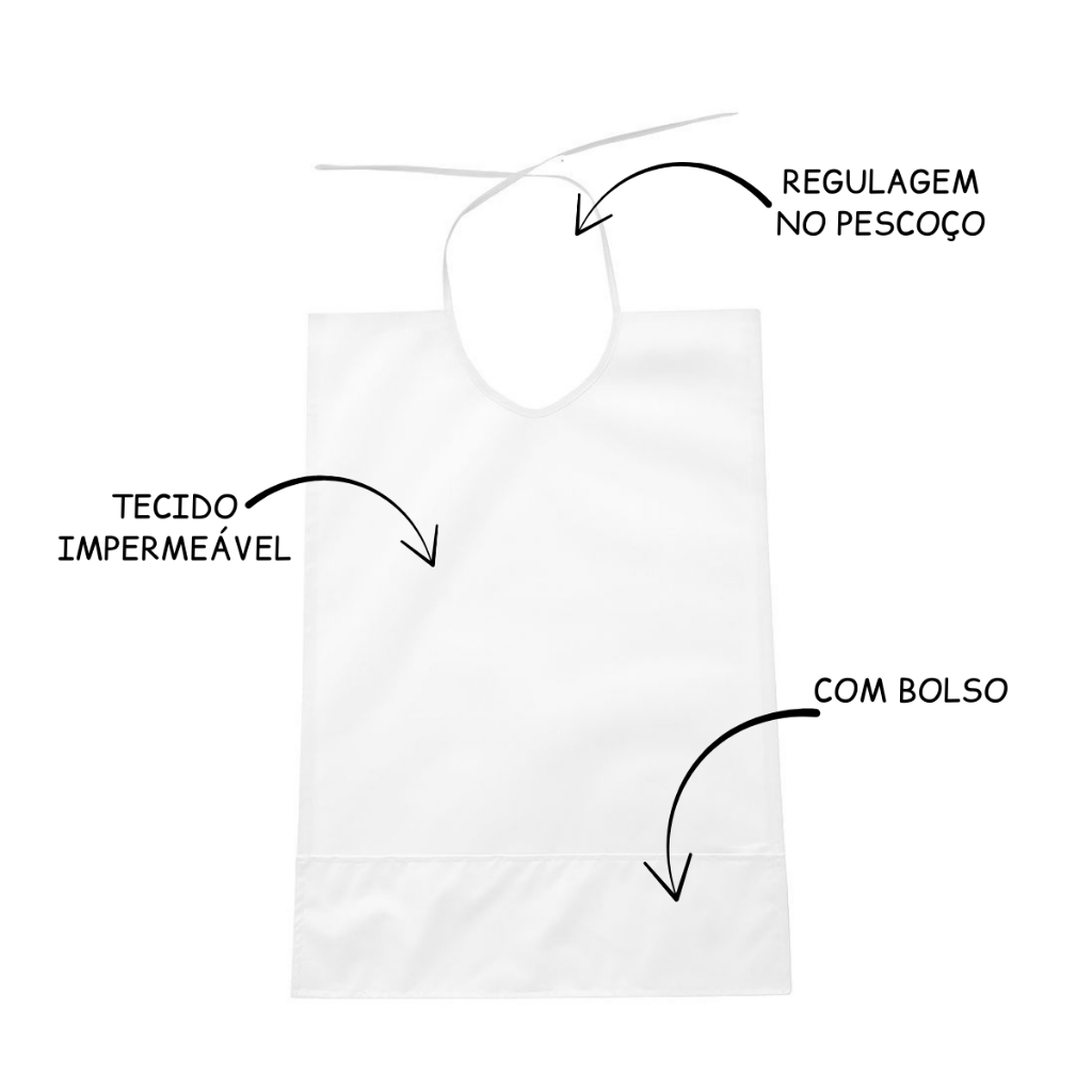 Babador Adulto para Idosos | Alimentação e Cuidados Especiais Cuide de quem você ama com mais conforto, higiene e dignidade! Nosso babador adulto é ideal para idosos, pessoas com mobilidade reduzida ou necessidades especiais que precisam de mais praticidade e proteção na hora das refeições. Características do Produto: -Medidas: 74cm altura, 50cm largura -Tamanho grande: Cobre bem o peito e parte do colo -Material resistente e lavável: Tecido impermeável, bagum, napa, pvc, fácil de limpar -Leve e confortável: Não incomoda o pescoço nem limita movimentos -Design discreto e elegante: Pode ser usado em casa ou em instituições de cuidado Higiene Garantida Protege as roupas contra líquidos, alimentos e sujeiras, facilitando o cuidado diário com a pessoa idosa e reduzindo o trabalho com trocas constantes de roupas. Ideal para: *Idosos com dificuldades motoras *Pacientes em recuperação *Pessoas com deficiência *Uso doméstico ou profissional (asilos, clínicas, cuidadores) Envio Rápido e Seguro Produto com qualidade garantida e pronto para envio imediato. Compre com tranquilidade e receba no conforto da sua casa!