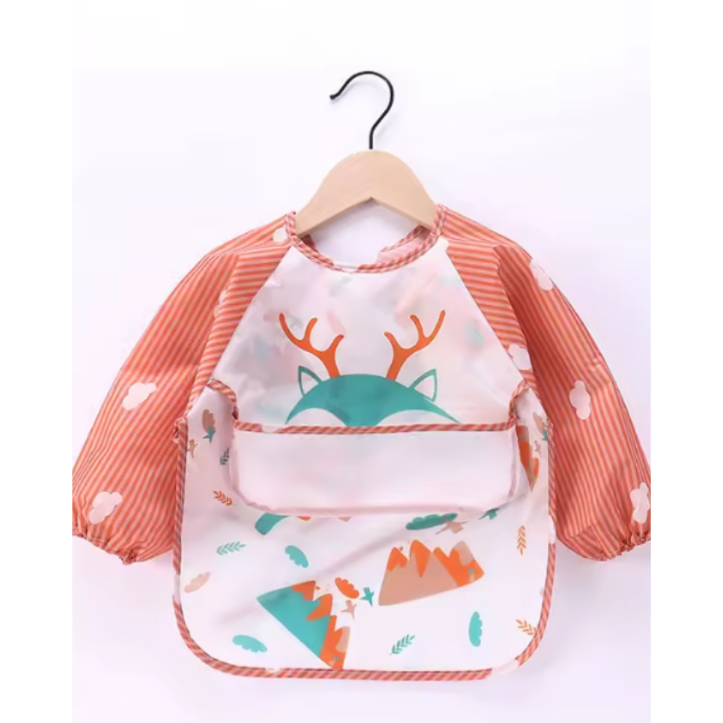 Babador Avental com Manga Longa e Bolso Cata-Migalhas Impermeável Bebê Infantil Animais Divertidos