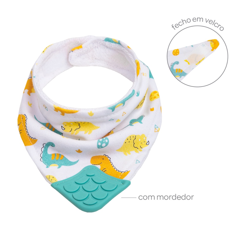 Babador Bandana com Mordedor Ajustável Tecido Algodão Atoalhado por Dentro Massageador de Gengiva