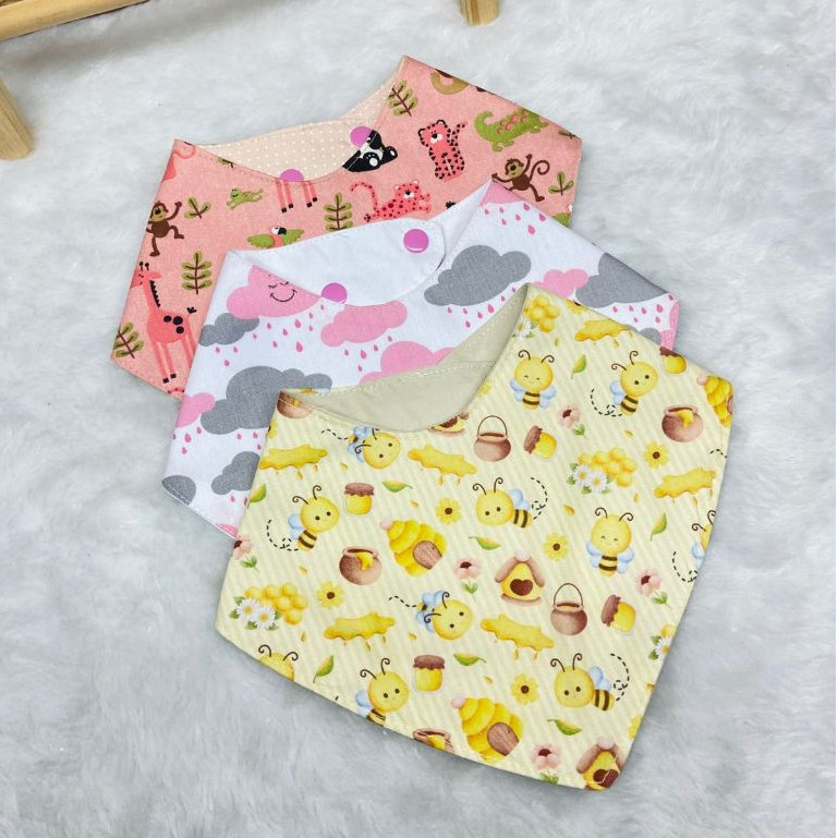 Babador bandana impermeável kit com 3 com ajuste