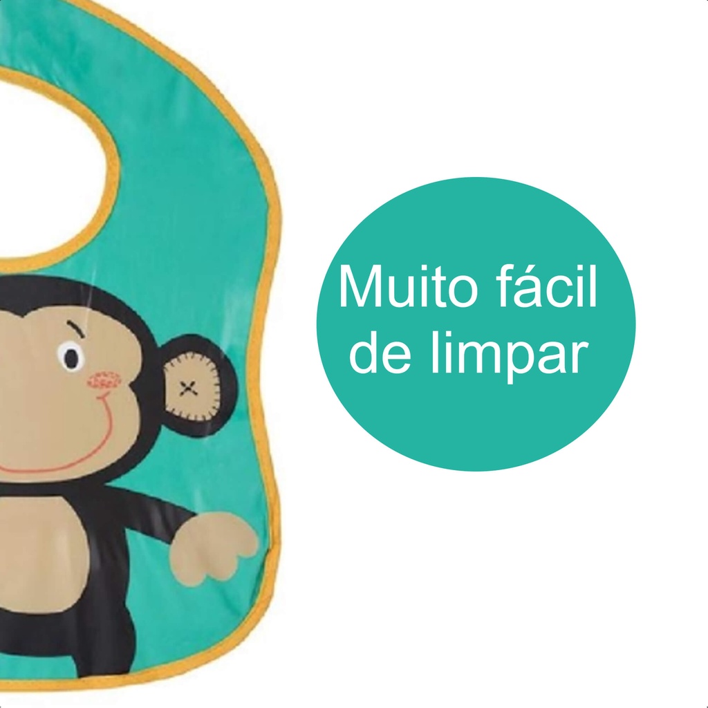 Babador Divertido Infantil Impermeável Ajustável Com Bolso Cata-Migalhas Macaquinho KaBaby - 18907C