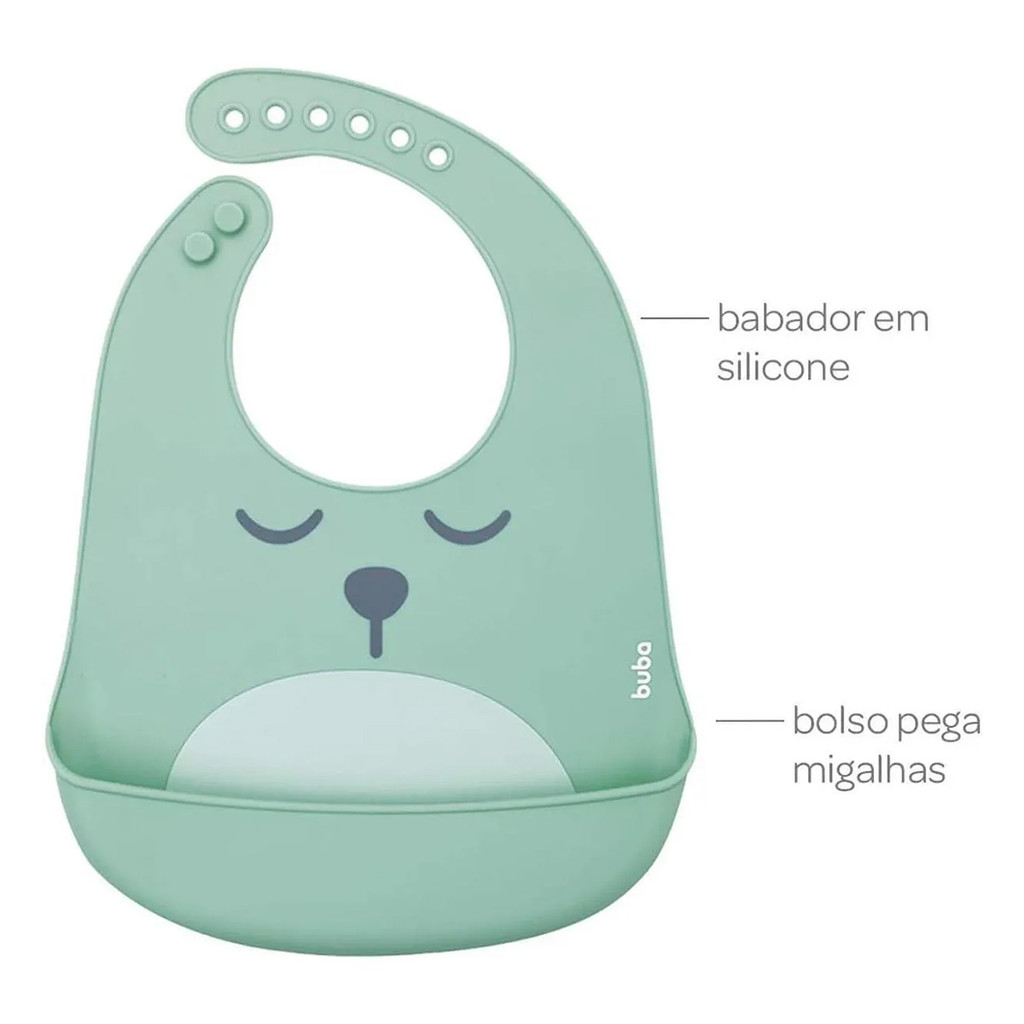Babador Silicone Buba Impermeável Pega Migalhas Gumy Verde