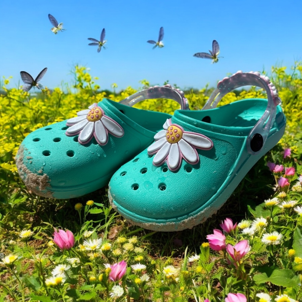 Babuche Infantil Feminino Jardim Meia Flor Com Correia Ajustável Leve e Confortável