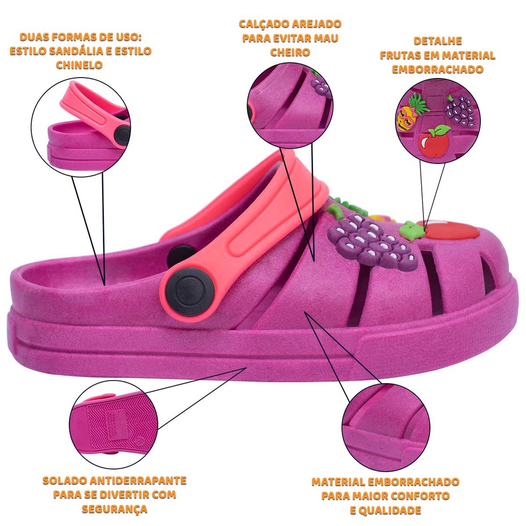 Babuche Sandália é um modelo clássico e despojado! Com duas opções de uso; leveza, praticidade e conforto são suas características principais. DESCRIÇÃO Confeccionado em material emborrachado, super confortável e com abertura para respiração dos pés. Possui solado antiderrapante, dando maior aderência em cada passo e duas opções de uso: estilo chinelo e estilo sandália. DETALHES DO PRODUTO Material Externo: Injetado PVC Micro Expandido Material da Sola: Injetado PVC Micro Expandido Fechamento: Correia: Duas opções de uso Embalagem: Não é entregue em caixa individual Nós da Pópidi cuidamos com carinho da relação pré e pós-venda, afinal a satisfação de nossos clientes é muito importante para nós! Atendimento: Segunda à sexta: 07:00 às 18:00 Sábado: 09:00 às 13:00 TABELA DE MEDIDAS 19/20 ---- 13,0cm 21/22 ---- 14,5cm 23/24 ---- 15,5cm 25/26 ---- 16,5cm 27/28 ---- 17,5cm 29/30 ---- 19,0cm 31/32 ---- 20,5cm COMO MEDIR Coloque o pé em cima de uma folha de papel e risque em volta dele com um lápis ou caneta. Meça o comprimento do topo até a base do contorno e adicione 0,5 cm de folga. LIMPEZA E CONSERVAÇÃO Fácil de lavar e secar! Mas evite usar substâncias abrasivas como álcool, detergentes ou solventes nos calçados, usar produtos neutros. Nunca os deixe de molho ou lave na máquina. A secagem deve ser feita em temperatura ambiente e na sombra, nunca no sol ou em máquinas. SOBRE A EMPRESA Visão Estar em constante expansão e inovação, de uma forma consistente e arrojada. Missão Proporcionar o bem estar dos nossos clientes, satisfazendo-os em um ambiente agradável e cortês com produtos a preços justos e de qualidade. Valores Respeito, Dedicação, Conexão e Atitude. Boas compras e volte sempre!!!