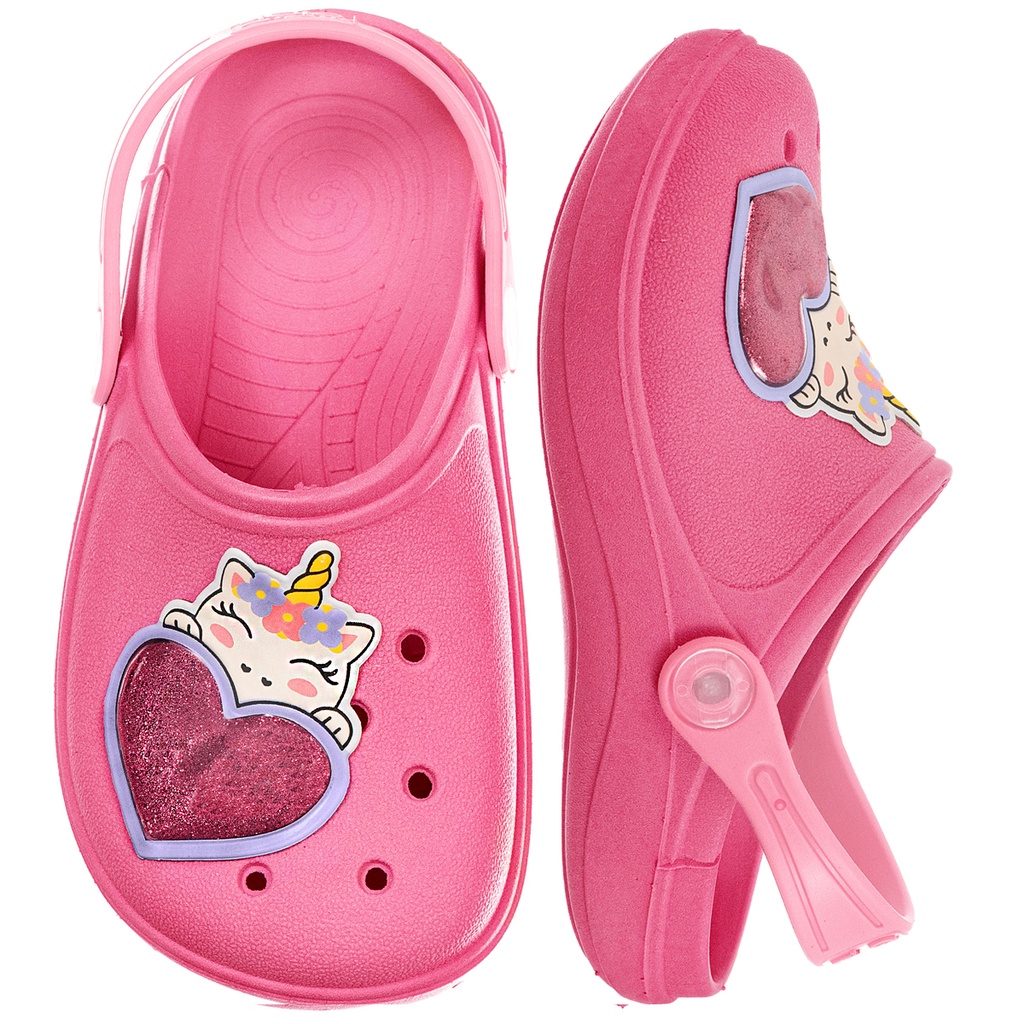 Babuche Infantil Sandália Feminina Menina Bebe Criança Calce Fácil Antiderrapante Borracha Unicórnio Coração Colorido