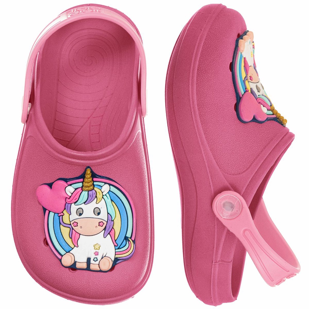Babuche Infantil Sandália Feminina Menina Criança Calce Fácil Antiderrapante Unicórnio Colorido Chinelo Conforto Macio