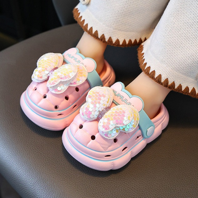 Babuche Infantil Sandálias Infantis Meninas Laço Fofo EVA Sandálias Ultraleves Antiderrapantes Sapatos De Praia