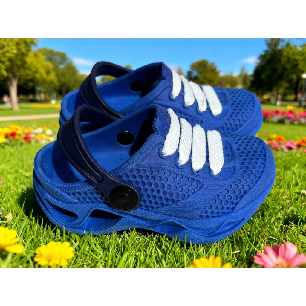Babuche ou Crock Infantil Masculino Leve, Macio e Confortável Cores Leves Enfeites Especiais