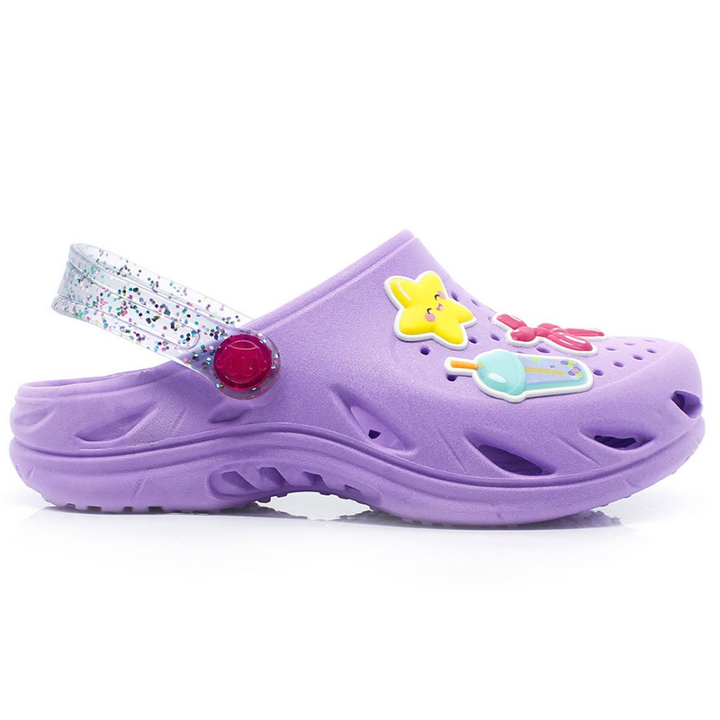 Babuche Sandália Chinelo Papete Infantil Plugt Menina Patches Estrela Glitter Lilás