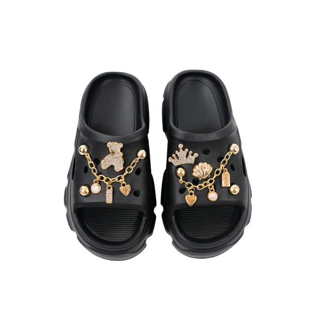 BABUCHE TRATORADA PLATAFORMA DECORADA PINS METALIZADOS