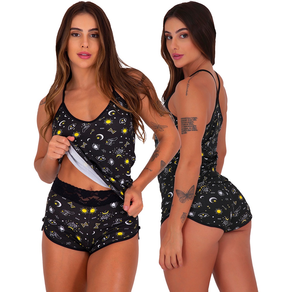 Baby Doll Algodão Paris Conjunto Pijama Short Doll