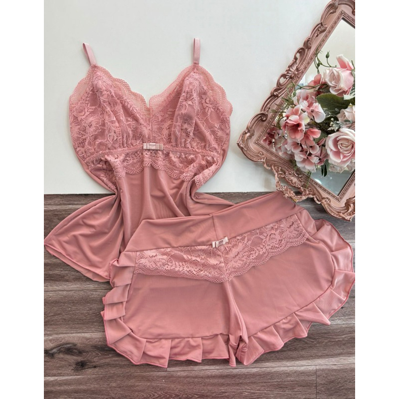 baby doll babadinho, short doll, beibi dol ,pijama de renda pijama feminino de babadinho, linha noite (babadinho liso)