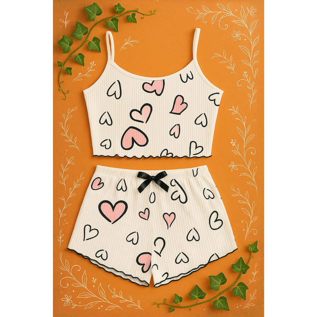 Baby Doll Pijama de Coração Short Doll Feminino - Luxo Bloguerinha Verão