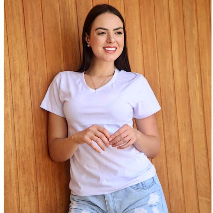 Baby Look Camiseta Feminina Básica Lisa Algodão Branco Gola V Preço Baixo !!