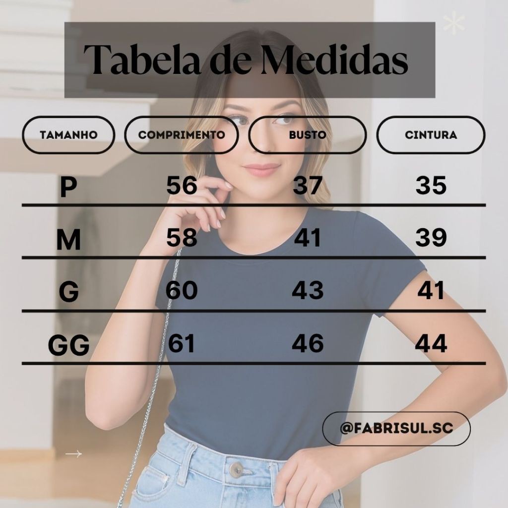 **SELECIONE COM ATENÇÃO O DESEJADO!!! VARIAÇÕES NESTE ANÚNCIO: 2 UNIDADES, E 1 UNIDADE !!!!!!!!!!!!!!!! A peça essencial que combina com tudo! Com design liso, a Baby Look se adapta facilmente a qualquer estilo – do casual ao mais arrumado. Versátil, confortável e atemporal, é ideal para compor looks em todas as estações. Principais características: ️ Tecido: 100% algodão – leve e respirável ️ ️ Modelagem confortável e que se ajusta ao corpo ️ Sem estampas – fácil de combinar com tudo ️ Ideal para o dia a dia ou produções mais elaboradas Tabela de Medidas: TAMANHO P Comprimento: 56 cm Busto: 37 cm | Cintura: 35 cm | Manga: 13 cm TAMANHO M Comprimento: 58 cm Busto: 41 cm | Cintura: 39 cm | Manga: 13 cm TAMANHO G Comprimento: 60 cm Busto: 43 cm | Cintura: 41 cm | Manga: 13 cm TAMANHO GG Comprimento: 61 cm Busto: 46 cm | Cintura: 44 cm | Manga: 13 cm