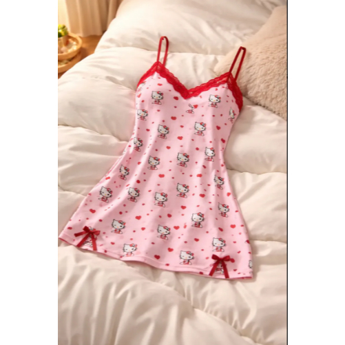 Babydoll pijama Hello kit camisola Hello Kit pijama confortável Camisola Renda gatinha