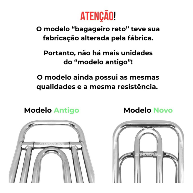 Bagageiro garupa bike tubolar reta reforcada motorizada cromada