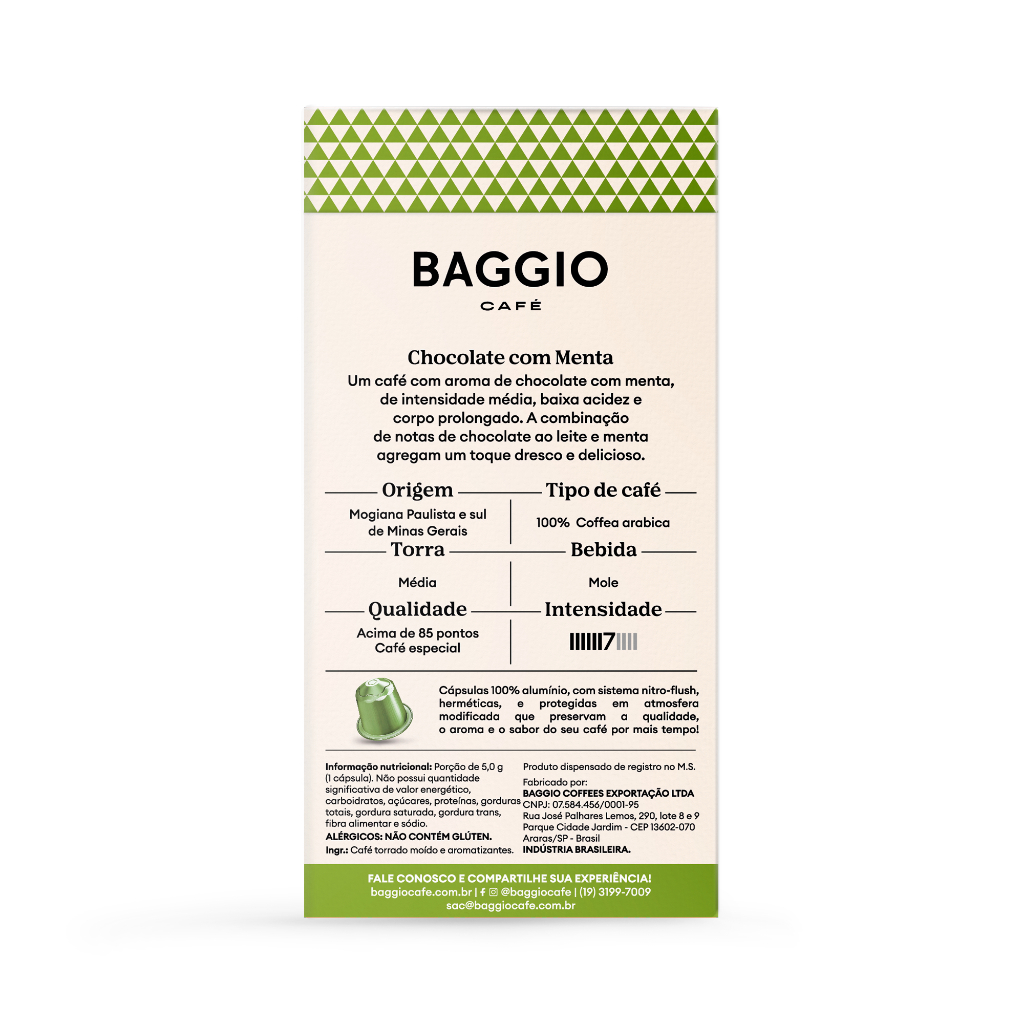 Baggio Café Cápsulas De Café Aroma Chocolate C/Menta Compatível Com Nespresso Contém 10 Cápsulas