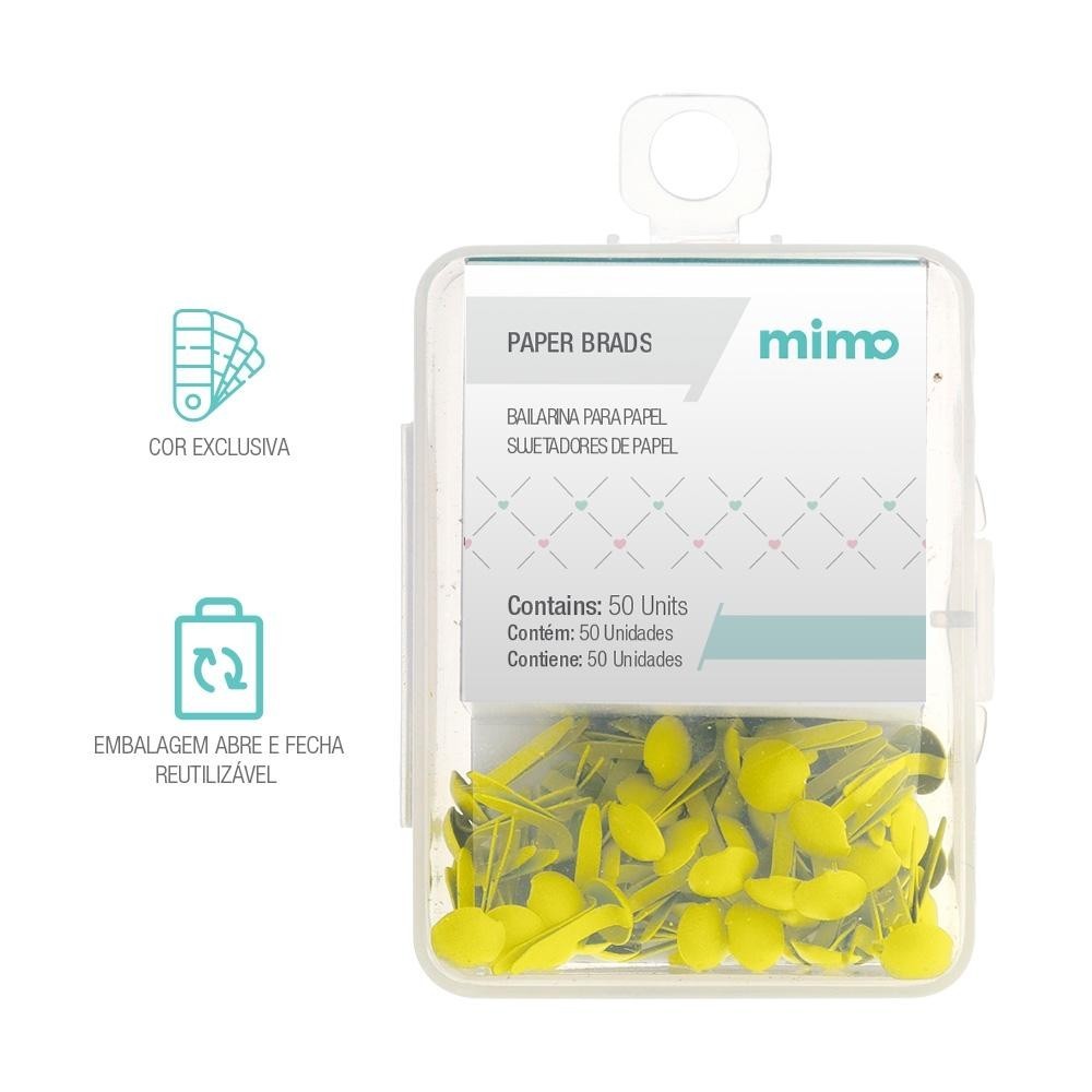 Bailarina Mimo Tem a Cor Ideal para Scrapbook! A Bailarina para Papel Mimo é perfeita para criar artesanatos diversos, tais como scrapbook, personalização de álbuns e quadros de papéis e cartões. Ela também é o material ideal para fazer trabalhos com papel em geral, como a articulação de bracinhos, perninhas e cabeças de personagens de scrap festa e artesanatos em camadas de papel. Versátil, pode ser usada ainda para prender ou encadernar papéis, filmes plásticos, pastas de arquivos, pastas catálogos e até bloquinhos personalizados. Outra possibilidade é usá-la para fazer pés protetores para fundos de bolsas e necessaires de couro, mídia PU sintética, lonita, tecidos, feltros eoutros materiais. Ela contém 50 unidades das bailarinas para papel na cor Amarelo Sol, que é da paleta exclusiva de 11 cores da Mimo Crafts. Experimente combiná-la com seu Papel Color Pop Mimo e seu artesanato vai ficar ainda mais encantador! A bailarina de papelaria da Mimo é de metal flexível, porém resistente: então, ela não estraga fácil. Tem cabeça com diâmetro de 6,5 mm e 2 hastes com 1,3 cm de altura, cada. Para melhores resultados, use as Bailarinas da Mimo em conjunto com o Alicate Aplicador de Ilhós Mimo Creating. Esse produto também é conhecido por vários outros nomes no mercado de papelaria criativa: colchete bailarina, colchete, grampo bailarina, cravo bailarina, clips bailarina, alfinete bailarina ou ainda apenas como bailarina. Uma das vantagens da Bailarina Mimo é que sua embalagem é do tipo abre e fecha reutilizável, ou seja, te ajuda na organização dos seus materiais para artesanato. Como Usar o Colchete Bailarina Mimo? Os colchetes bailarina Mimo são bem fáceis, práticos e rápidos de usar. Primeiro, fure o material desejado com a ajuda do Alicate Aplicador de Ilhós Mimo Creating. Depois, basta passar a bailarina para papel com as hastes fechadas por dentro do furo. Após isso, é só dobrar as suas hastes de metal flexivel para os lados de fora e pronto: simples assim! Informações Técnicas: Produto: Bailarina para Papel - 6,5 mm - Amarelo Sol - Mimo - 50 Unids Quantidade: 50 Unidades Cor: Amarelo Sol Diâmetro da Cabeça: 6,5 mm Altura das Hastes: 1,3 cm Composição: Metal Flexível, Mas Resistente - Não Estraga Fácil Recomendação de Uso: em Conjunto com Alicate Aplicador de Ilhós Mimo Creating Diferencial: Cor Perfeita para Combinar com a Paleta de Cores da linha de Papel Colorido Color Mimo Tipo de Embalagem: Abre e Fecha Reutilizável Marca: Mimo Crafts Código de Fábrica (SKU): 6352