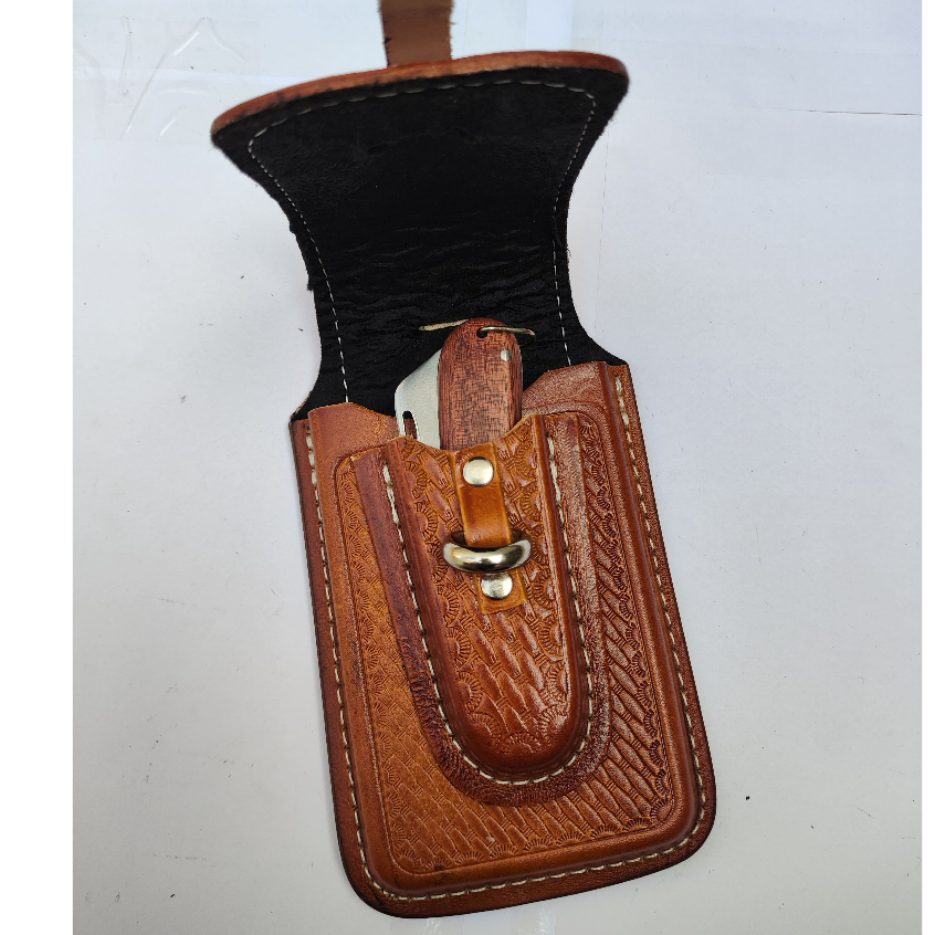 Bainha Canguru Celular e Canivete Couro Legítimo - Fecho Virola