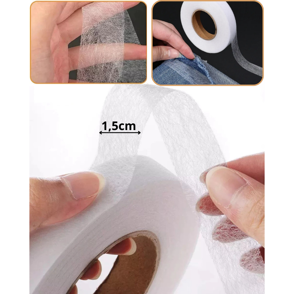 Faça a bainha de roupas sem costurar. Dispensa linha e agulha, não solta ao lavar. Pode ser usado em cortinas, vestidos, calças, saias, bermudas etc. Aplicável com ferro quente ,possui cola dos 2 lados Contem 1rolo de 1,5 cm de largura por 10 metros de comprimento 10 metros de comprimento x 1,5 cm de largura. MODO DE USAR CORTE A FITA NO MESMO COMPRIMENTO DOS TECIDOS QUE VOCÊ VAI COLAR, COLOQUE ESSE PEDAÇO DE FITA ENTRE OS DOIS TECIDOS QUE DESEJA COLAR, (ESSE PROCESSO PODE SER FEITO ENTRE TECIDOS DIFERENTES OU TECIDOS IGUAIS NO CASO DE FAZER BARRA EM CALÇAS CORTINAS ETC, DOBRANDO O MESMO TECIDO POR EXEMPLO) NÃO DEIXE RUGAS PARA OBTER UM MELHOR ACABAMENTO COLOQUE O FERRO DE PASSAR ROUPAS BEM QUENTE NA EXTREMIDADE COM A FITA NO MEIO ENTRE OS DOIS TECIDOS ASSIM UMA FACE VAI COLAR NA OUTRA.