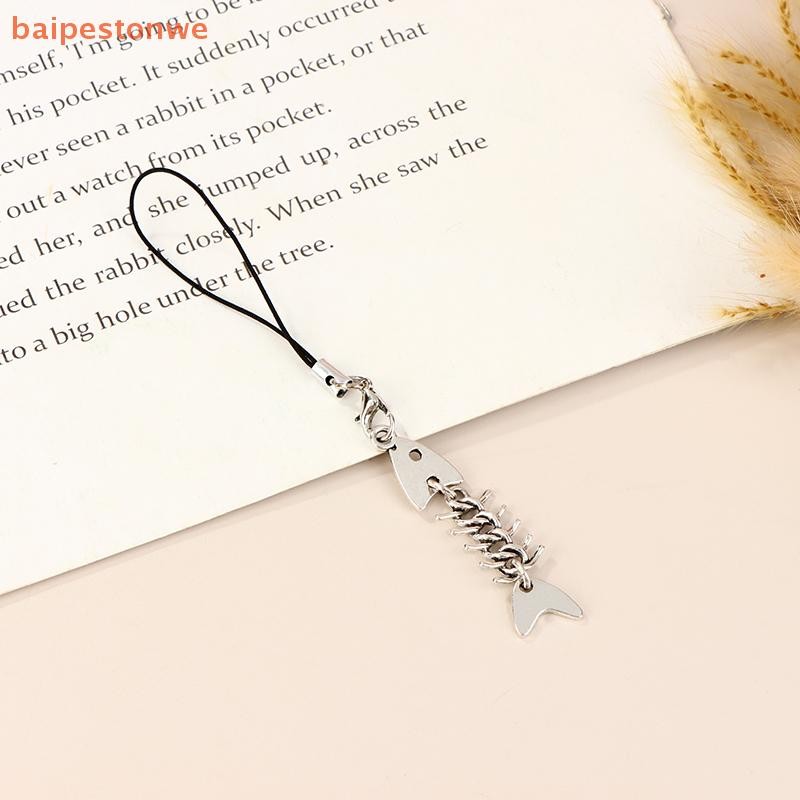 [baipestonwe] Y2K Criativo Espinha De Peixe Corrente De Telefone Móvel Metal Osso Cordão Celular Charme Chaveiro Acessór