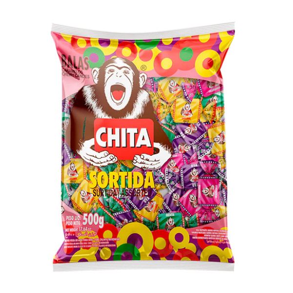 | Bala Mastigável Chita Sortida 500g - Kit c/ 2 pacotes | R$ 23,99 | — | 4.8/5 | 9 |