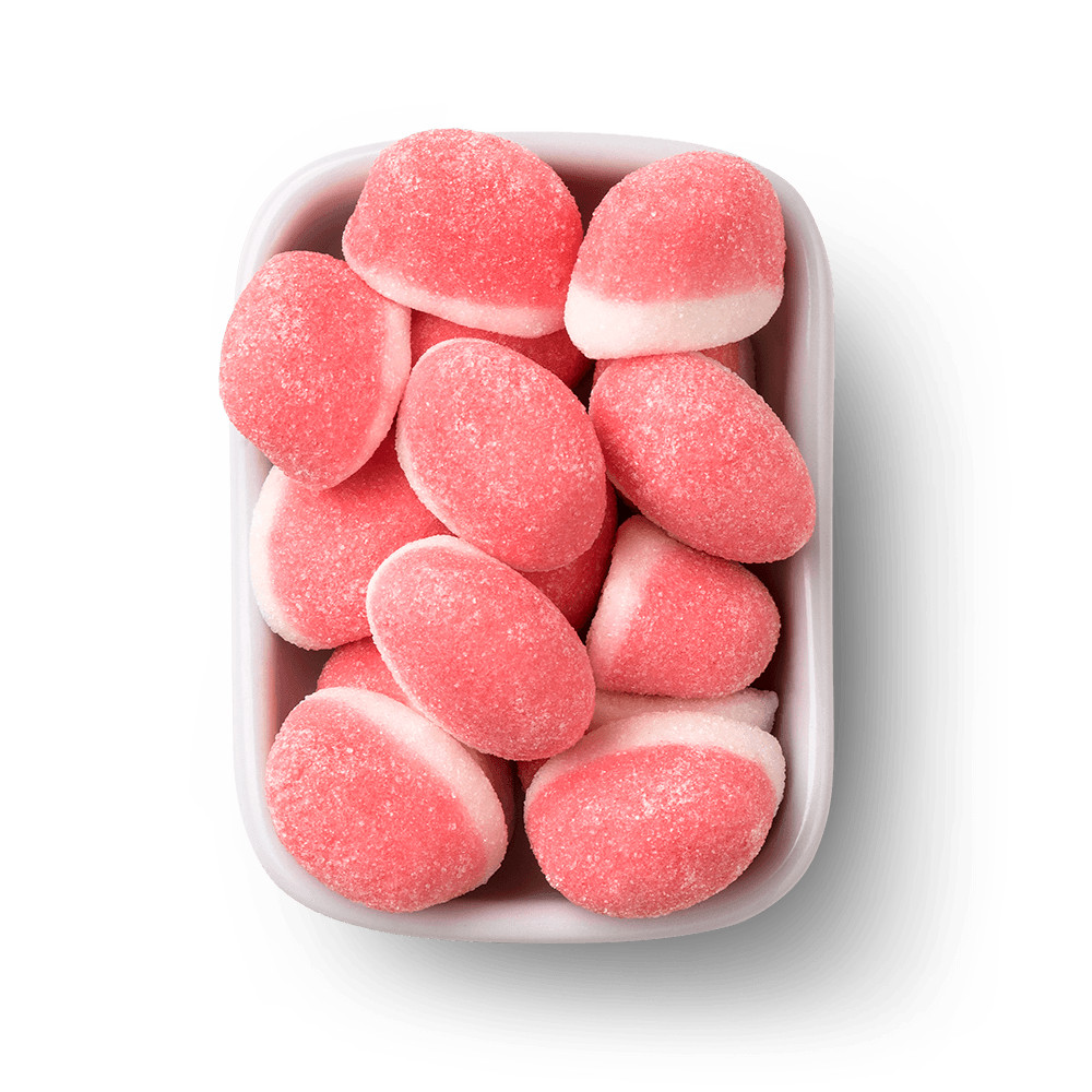 Um doce e irresistível beijo de morango! Bala de gelatina cheia de sabor! Disponível nas embalagens de 70g e 250g.