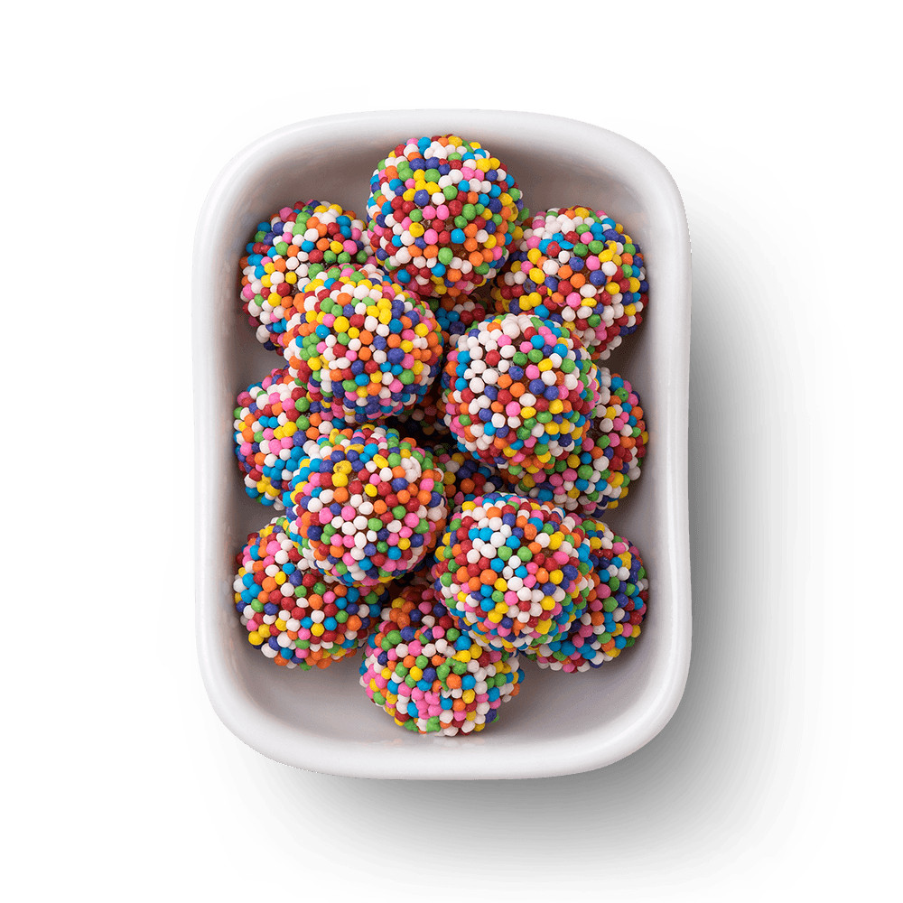 Deliciosa bala de gelatina sabor consagrado de tutti frutti com cobertura de miçangas coloridas! Uma festa! Disponível nas embalagens de 80g e 250g.