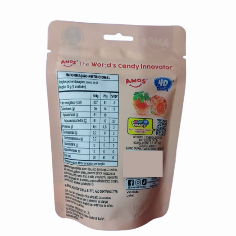 BALA DE GOMA AMOS 4D MORANGO 65G A marca Amos é uma das marcas de doces mais inovadoras do mundo! Uma explosão de sabor e diversão! A Bala Amos 4D Fruit Gummy Strawberry Burst 65g traz toda a intensidade do morango em uma textura macia e divertida, preenchida com suco de fruta, perfeita para quem gosta de balas diferentes e cheias de personalidade. Cada mordida é uma experiência frutada que agrada crianças e adultos. Este sabor recebeu a nota máxima na Premiação Internacional de Sabor de qualidade, ou seja, é um produto com sabor inigualável. Uma explosão de sabor! Prática e saborosa, é ideal para levar como lanche, presentear ou incluir em kits e lembrancinhas. Uma bala que transforma momentos simples em uma diversão doce e marcante. ALÉRGICOS: Pode conter soja e leite. Não contém Glúten. Corantes dióxido de titânio, vermelho Allura AC, tartrazina e azul brilhante FCF. ESPECIFICAÇÕES: Marca: Amos Peso: 65g Validade: 09/06/2027 PRODUTO IMPORTADO