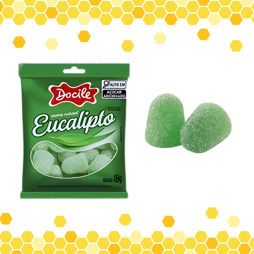 Bala de Goma Mini Eucalipto C/24 unidades de 18g Refrescante Ideal para o Dia a Dia Docile
