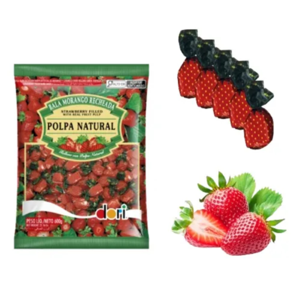 Bala de Morango Recheada com Polpa Natural Dori – 600g