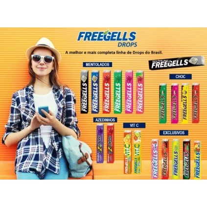 Bala Drops Freegells c/12un | Todos os Sabores | Sem Glúten Pastilha Riclan Atacado